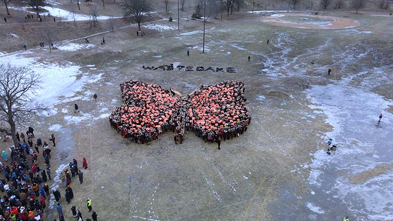 1,000 neighbors gathered to create this spectacular piece, and we had joyful music from @brasssolidarity and the @singingresistancetc. This is community. This is #Minneapolis. 💜🦋💜
