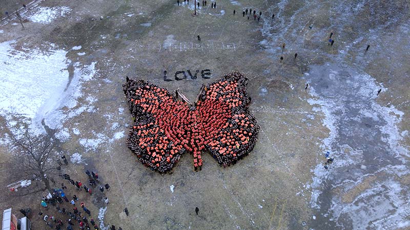 This inspiring human-powered mosaic was documented from above by artist-managed drones, courtesy of Big Animal Productions.