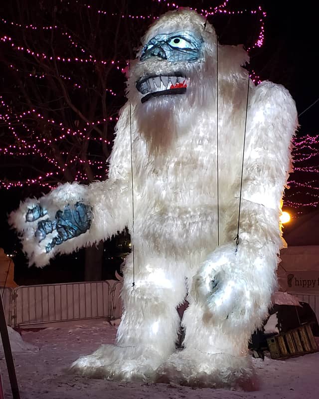 Thousands delighted in pulling the ropes and making the Yeti dance, laugh and yowl. It is our hope to display Yeti once more this Winter and to roll him out again at Holidazzle 2020—perhaps with the addition of “Bride of Yeti”? And even a babbling horde of little baby Yetis?
