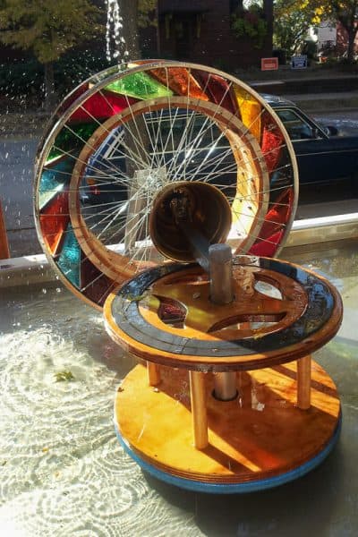 Kinetic water-play area for Seward Childcare Center, as an integrated element of a storm-water run-off irrigation system.